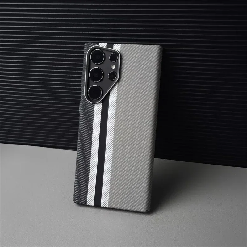 Luxury Carbon Fiber Texture MagSafe Case For Samsung S25 S24 S23 Ultra Alloy Lens Shockproof Charging Magnets Cover Hard Shields