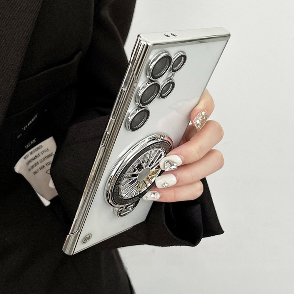 Ultra thin frameless magnetic stand phone case for Samsung galaxy series.Luxury plating clear pc protective case...