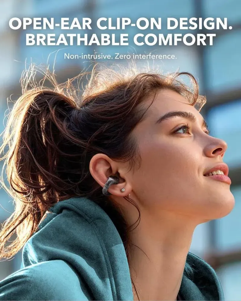 Explore a new standard of comfort with the Soundcore C30i open-ear earbuds, thoughtfully designed for an exceptional listening experience. Crafted for breathability, these earbuds feature a secure clip-on design that allows you to enjoy your favorite music with complete freedom. Moreover, the lightweight build ensures extended wear without discomfort.