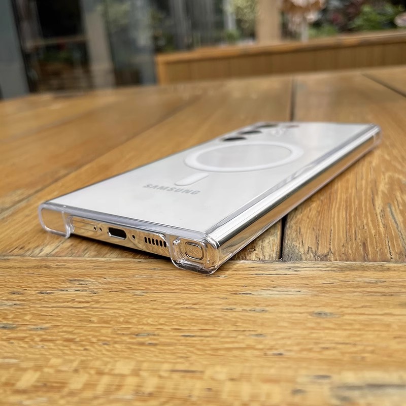 Magsafe Shockproof Phone Case .Luxury Clear Magnetic Cover . Hard PC Back Cover.Anti yellow