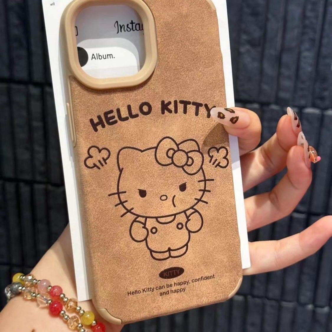 Matte Lambskin Leather Hello Kitty Case For iPhone . Silicone Soft Shockproof