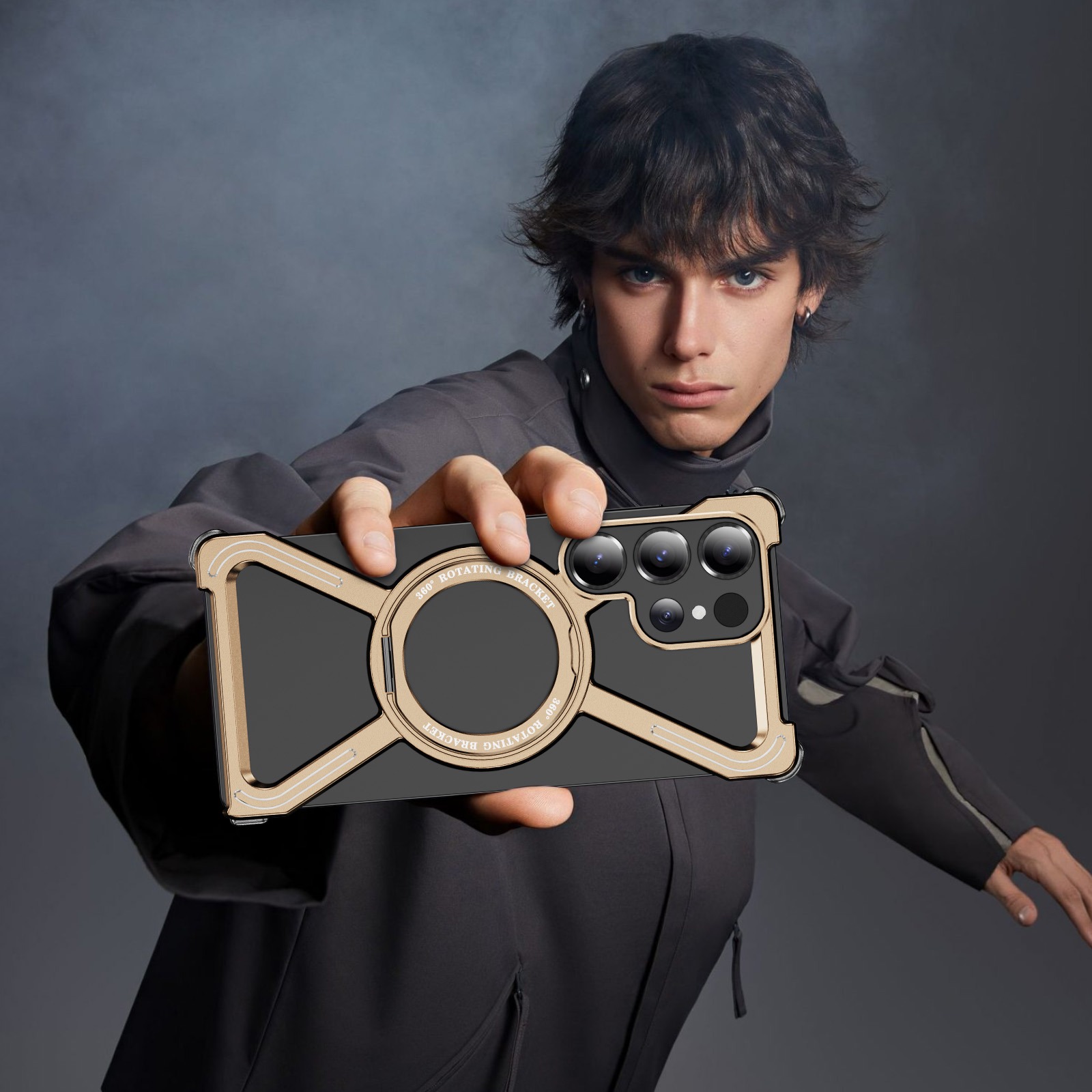 Aluminum Alloy Frameless Case With Rotatable Holder Magnetic Metal Case For Samsung