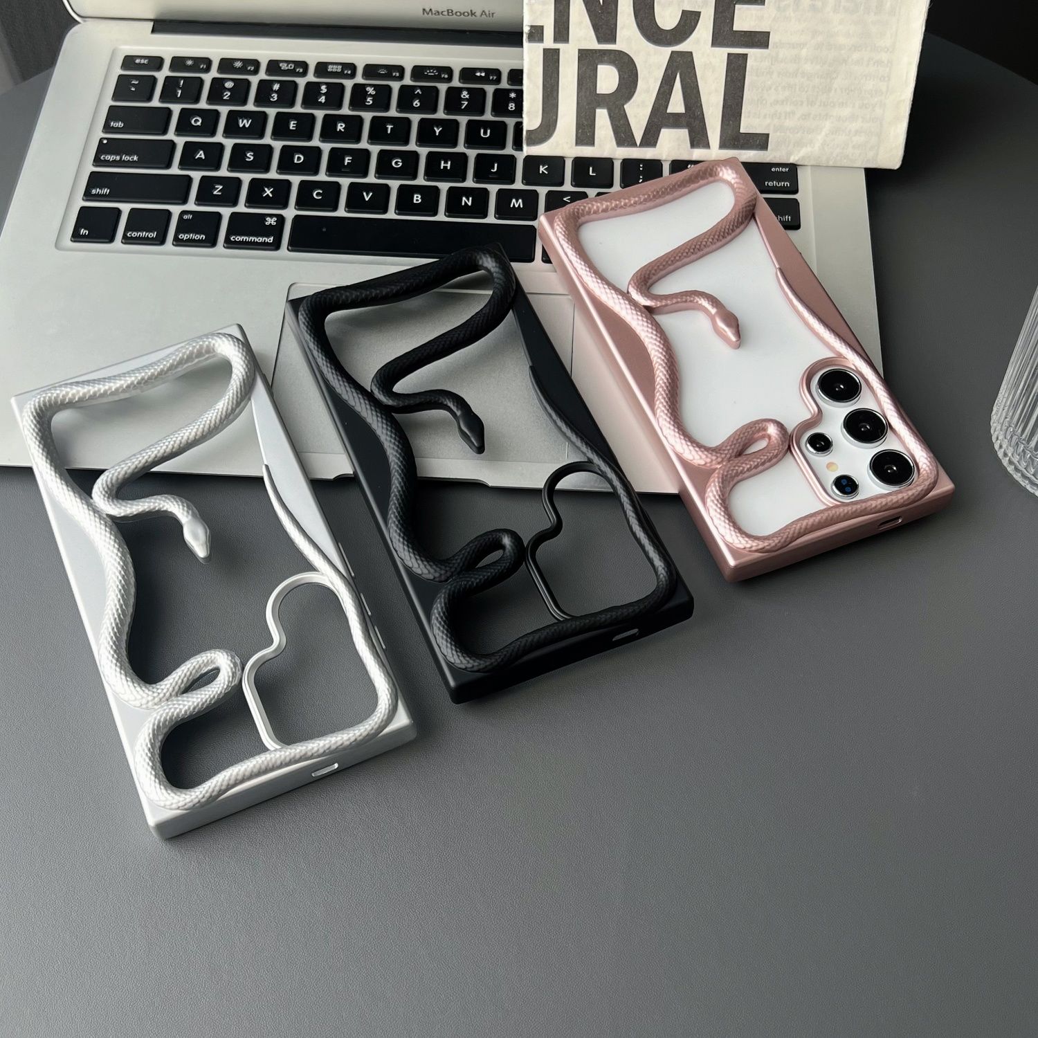 Plating 3D Hollow Snake Phone Case For Samsung S25 S24 S22 S23 Ultra FE A56 A36 A26 A16 A06 A55 Fashion Soft Shockproof Cover
