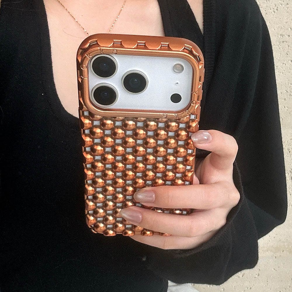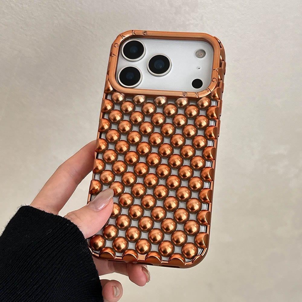 Fashion Plating Cosmic Orange Pearl Round Bead Hollow Phone Case (for iPhone 17 Pro Max and iPhone 17 pro .