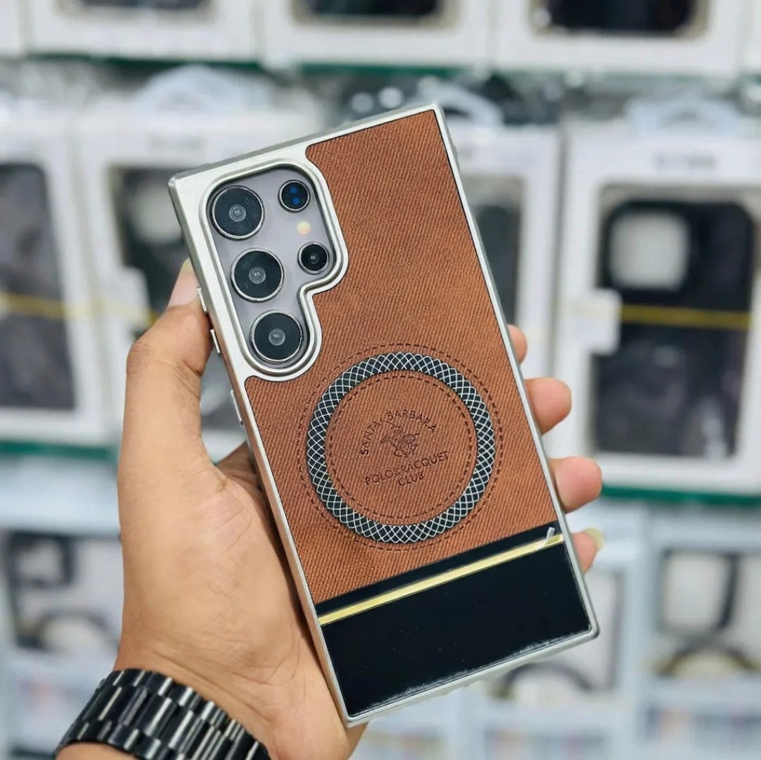 Luxury P o l o Design Case – Premium Leather Texture with Elegant Metal colour Frame Protection for Samsung galaxy series.