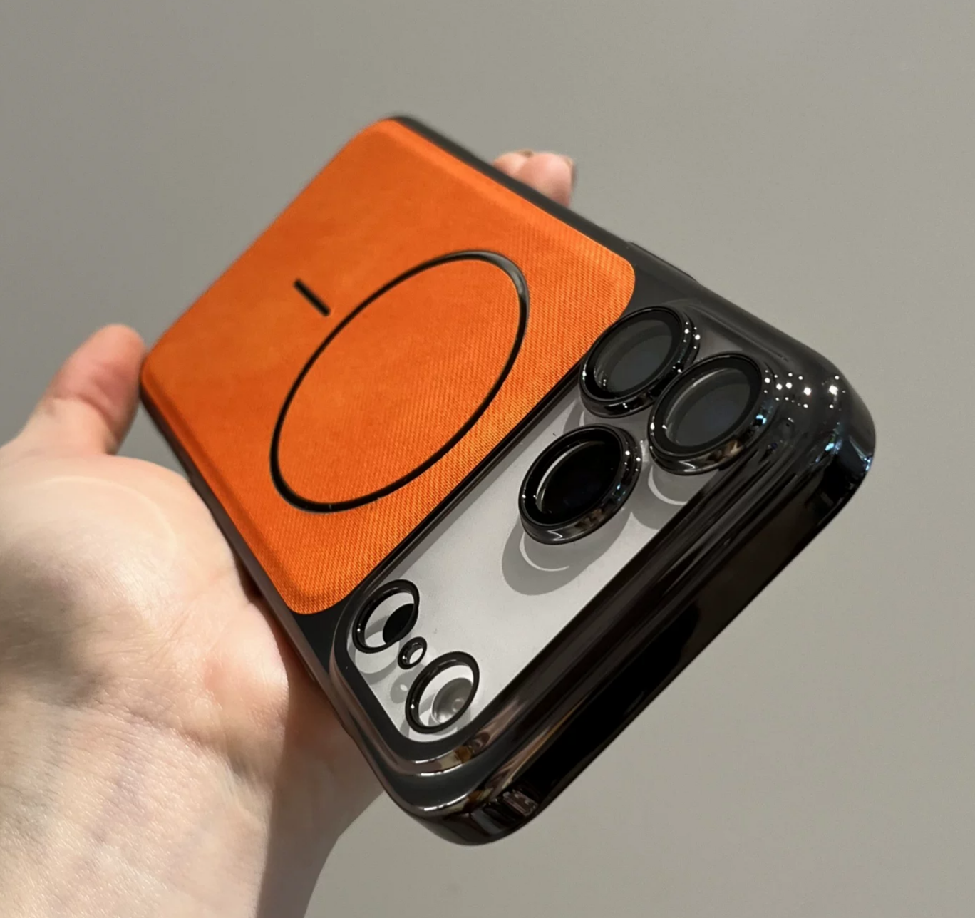 iPhone MagSafe case, fabric iPhone case, magnetic iPhone cover, luxury iPhone case, shockproof iPhone cover, premium iPhone back cover, MagSafe compatible case, iPhone stylish case, orange fabric iPhone case, iPhone magnetic ring case.. Available for iPhone 12 to 17 pro max .