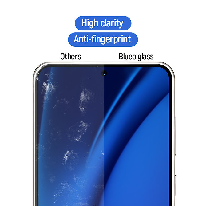 BLUEO 2.5D Silk Full Cover Screen protector provides HD clarity, edge-to-edge protection, scratch resistance, smooth touch, and anti-fingerprint coating for durable and easy-to-install screen protection.