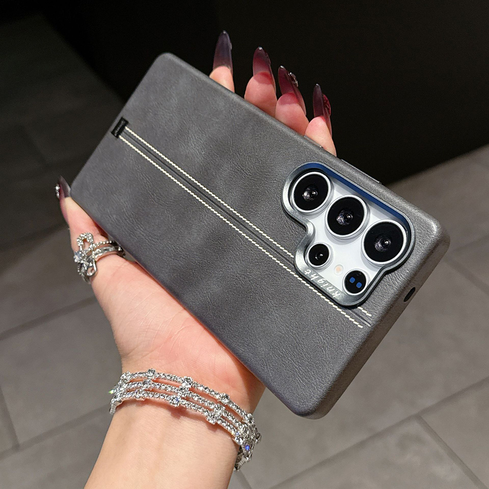 Retro PU Leather Texture Magsafe Phone Case For Samsung Galaxy S25 Ultra ,S24 Ultra . Luxury Metal Lens Wireless Charging Armor Cover