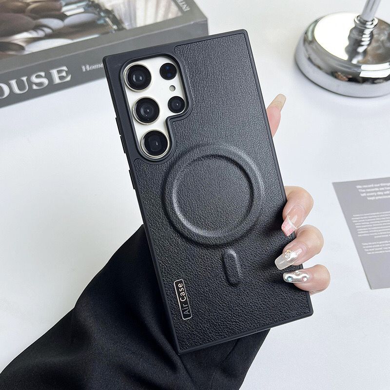 Plain leather magnetic Magsafe case for Samsung
