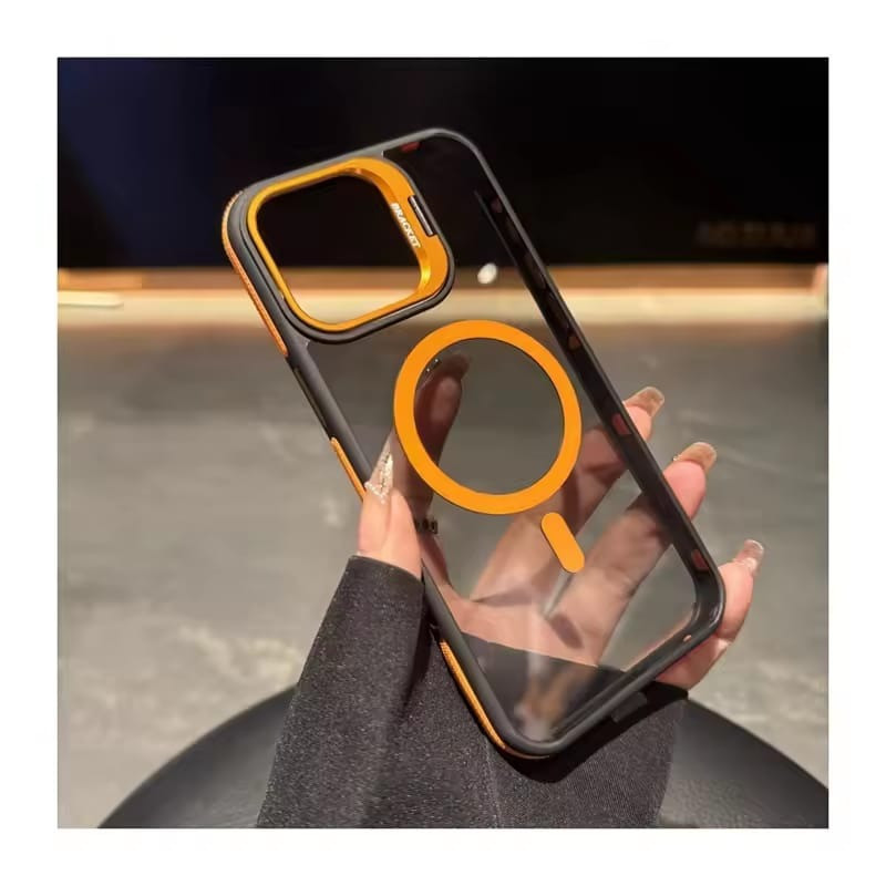 Anti slip strip Contrast color lens holder magnetic Case For iPhone.