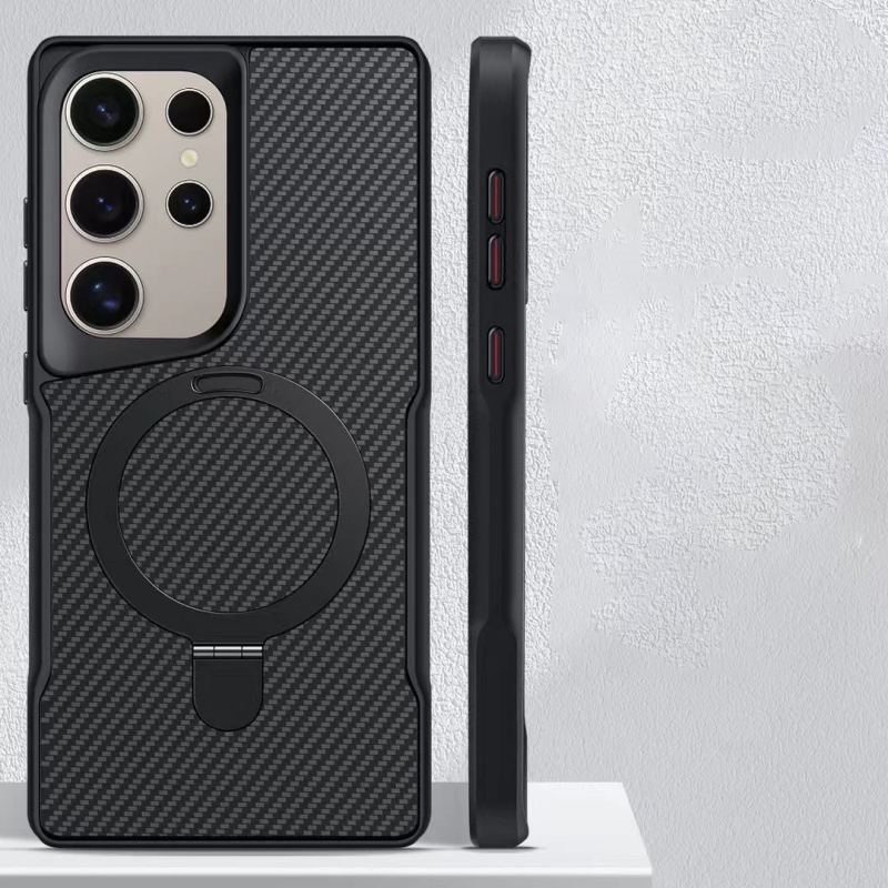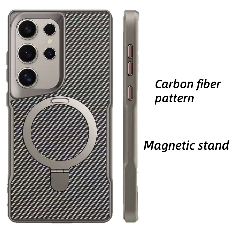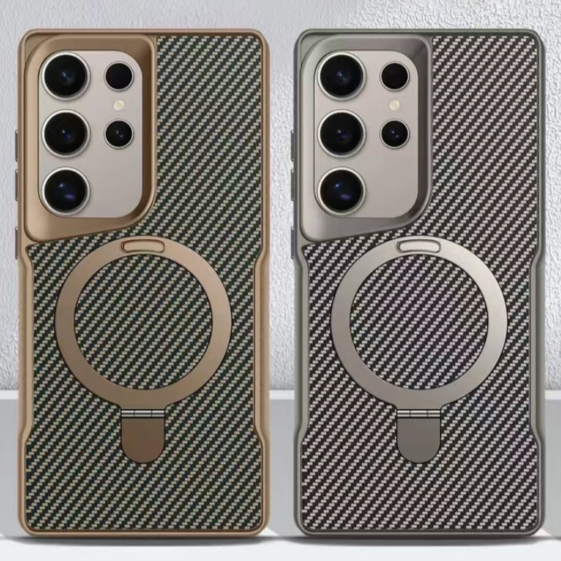Luxury Carbon Fiber Magsafe Wireless Charging Hard Case for Samsung Galaxy S25 S24 S23 Ultra Metal Lens Frame Magnetic Cover
