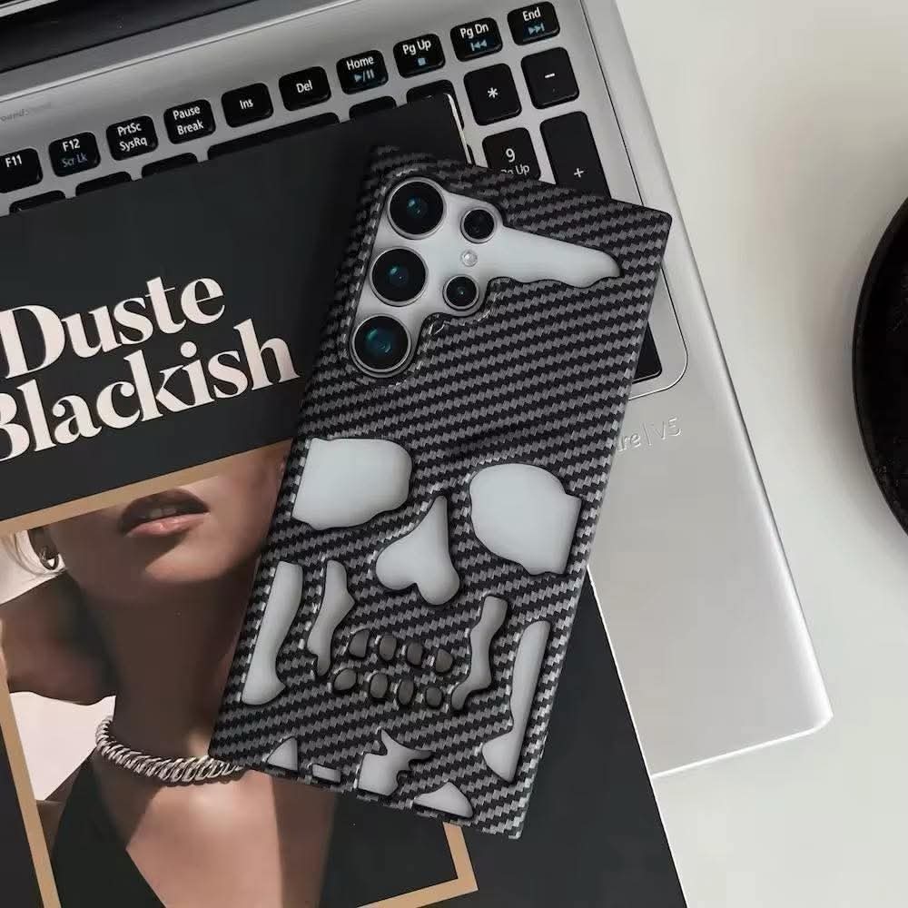 Carbon Fiber Skull Skeleton Ventilation Phone Cover for Samsung galaxy.Hollow breathable Cases Coque.