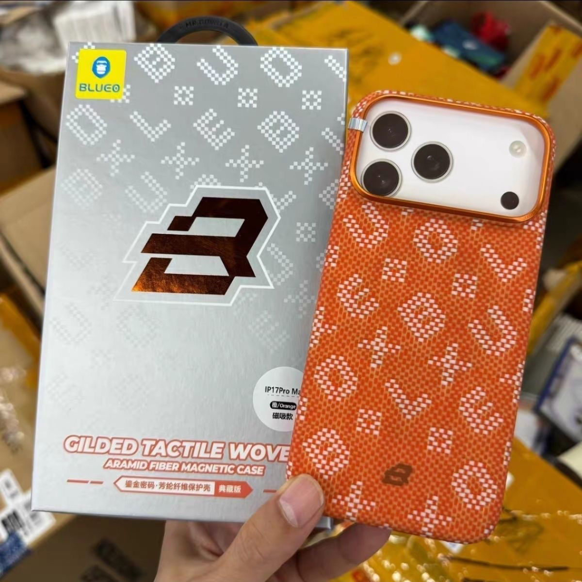 Blueo Gilded Woven Aramid Fiber Magnetic Case for iPhone 17 Pro Max Oranage