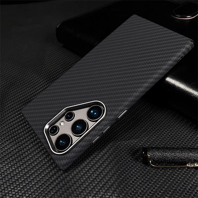 Carbon Fiber Texture Magsafe Case for Samsung S25 S24 S23 Ultra Magnetic Charging Shell Luxury Alloy Lens Protection Hard Cover Coque