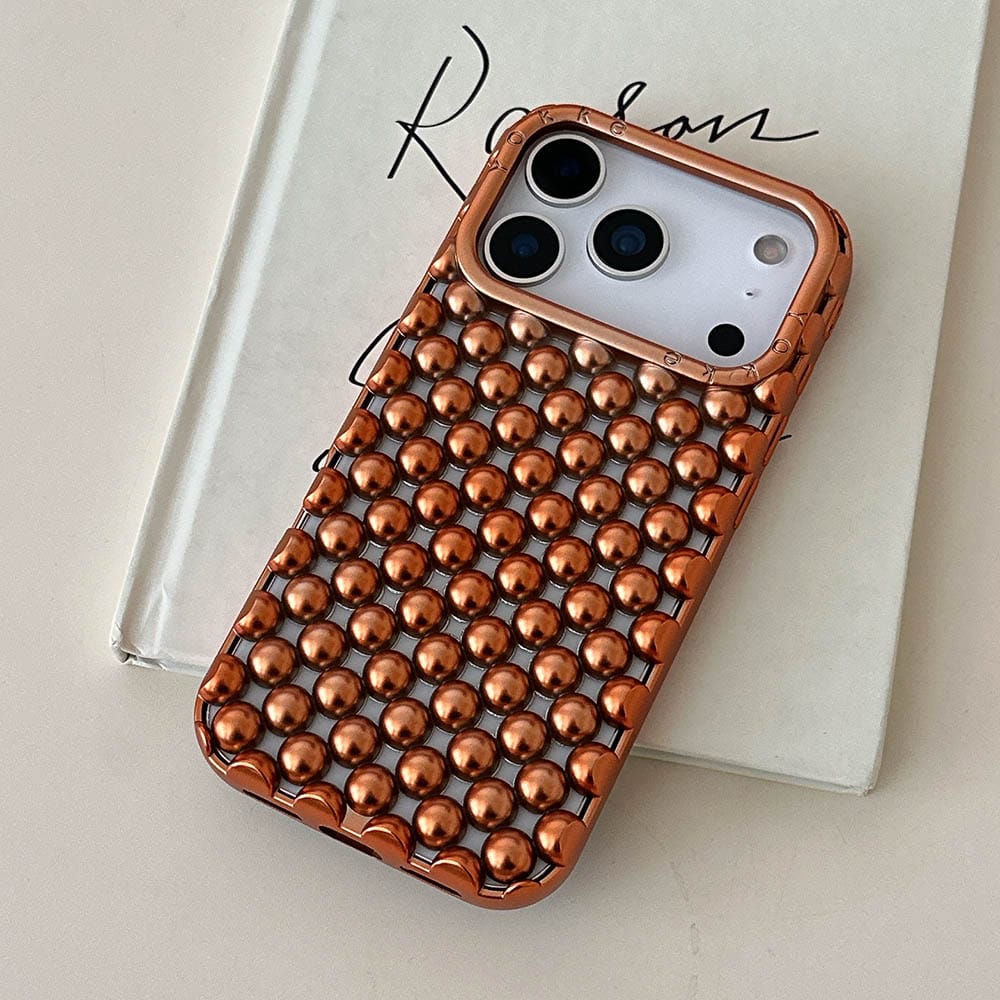 Fashion Plating Cosmic Orange Pearl Round Bead Hollow Phone Case (for iPhone 17 Pro Max and iPhone 17 pro .