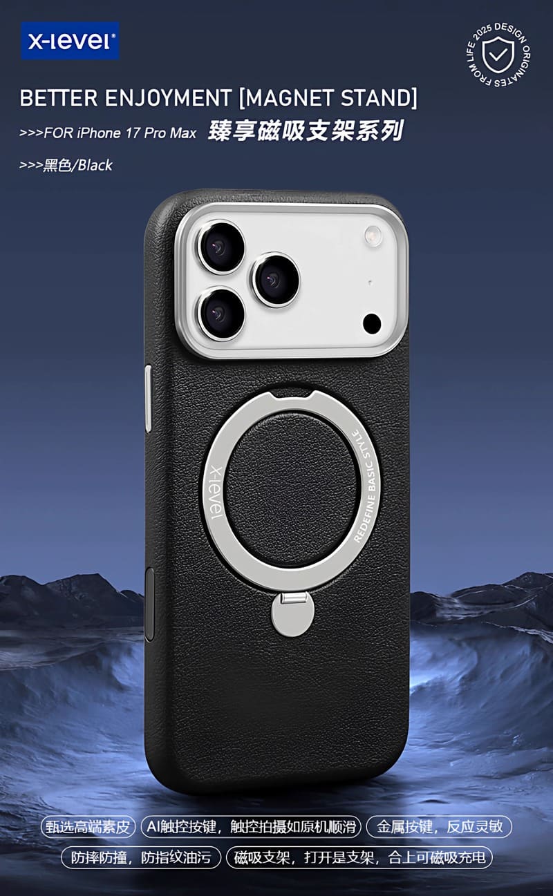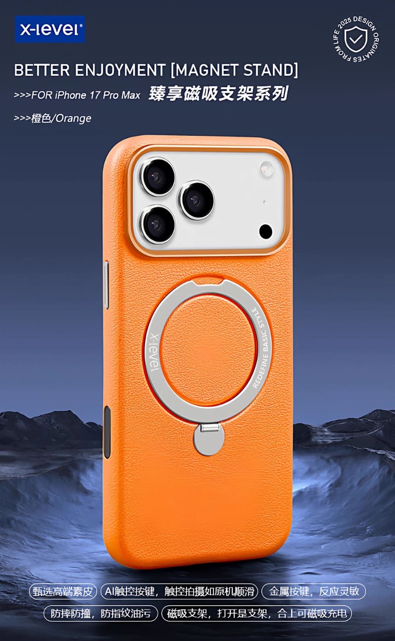 X level Better enjoyment leather Magsafe Metal Stand Case iPhone 17 Pro | 17 Pro Max